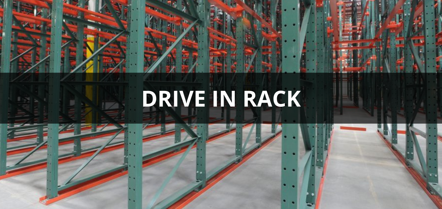 Drive-In Racking is uniquely designed to maximize space and productivity with its single point of entry and exit creating a last in, first out (LIFO) method. This system provides high density storage and is ideal for warehouses with a large amount of inventory but few types of product.