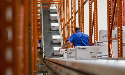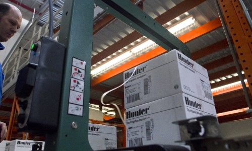 As the leading manufacturer of lawn sprinkler systems, Hunter regularly receives a large quantity of smaller orders. Fulfilling these orders in timely manner so they could achieve their "same-day" shipping commitment was requiring a large labor force and extra manhours. In addition, the process for strapping and labeling packages resulted in delays. They reached out to Raymond West for solutions.