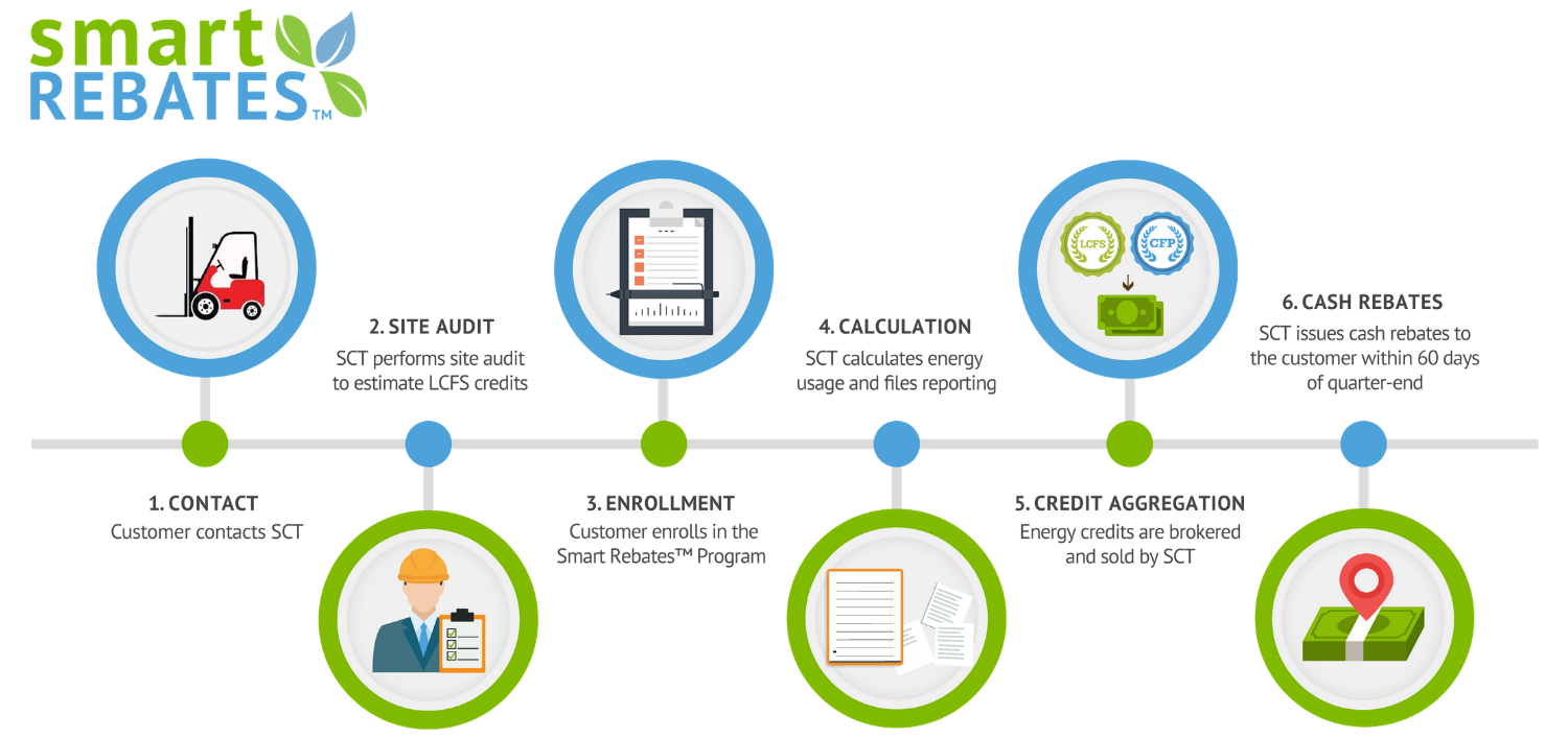 Smart Charging Technologies LLC (SCT) specializes in energy management, helping businesses make better use of industrial equipment. Raymond West has partnered with SCT to assist in providing our customers with rebates through the Low Carbon Fuel Standard (LCFS) program at no cost.